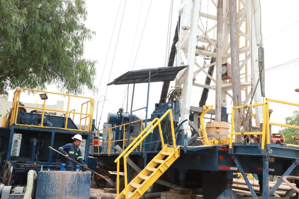 El Alcalde Enrique Galindo Ceballos explicó que para la perforación del Pozo El Aguaje I se utiliza la mejor tecnología para concluir en menos de tres meses, ya que con los métodos tradicionales se tardaría alrededor de 9 meses y luego se llevaría otro mes para equipar, “pero es indispensable acortar el tiempo, debido a que la crisis está a la vuelta de la esquina”, señaló.