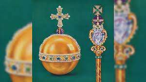 En un momento de la ceremonia el rey recibe el Orbe. Esta es la representación del poder del monarca, el orbe dividido en tres partes, tres continentes que eran los que se conocían en el medievo.