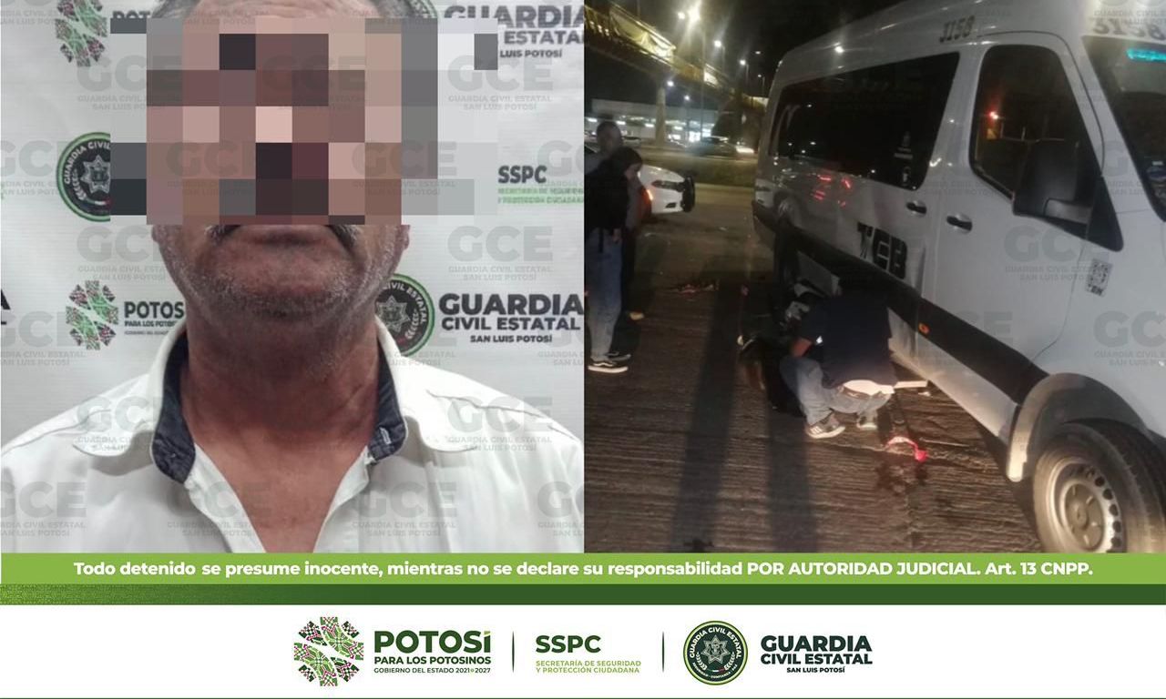Las autoridades se trasladaron a la carretera 57 en la colonia Prados Glorieta, al arribar visualizaron que el conductor de una camioneta marca Mercedes Benz, tipo Esplinter, modelo 2020, color blanco, presumiblemente arroyó a un individuo y le provocó lesiones; de inmediato fue atendido por los paramédicos a fin de detectar que no presentara lesiones de peligrosidad, mientras que Ricardo de 50 años de edad fue detenido por policías de la GCE tras hacerle de conocimiento del probable delito en el que incurrió.