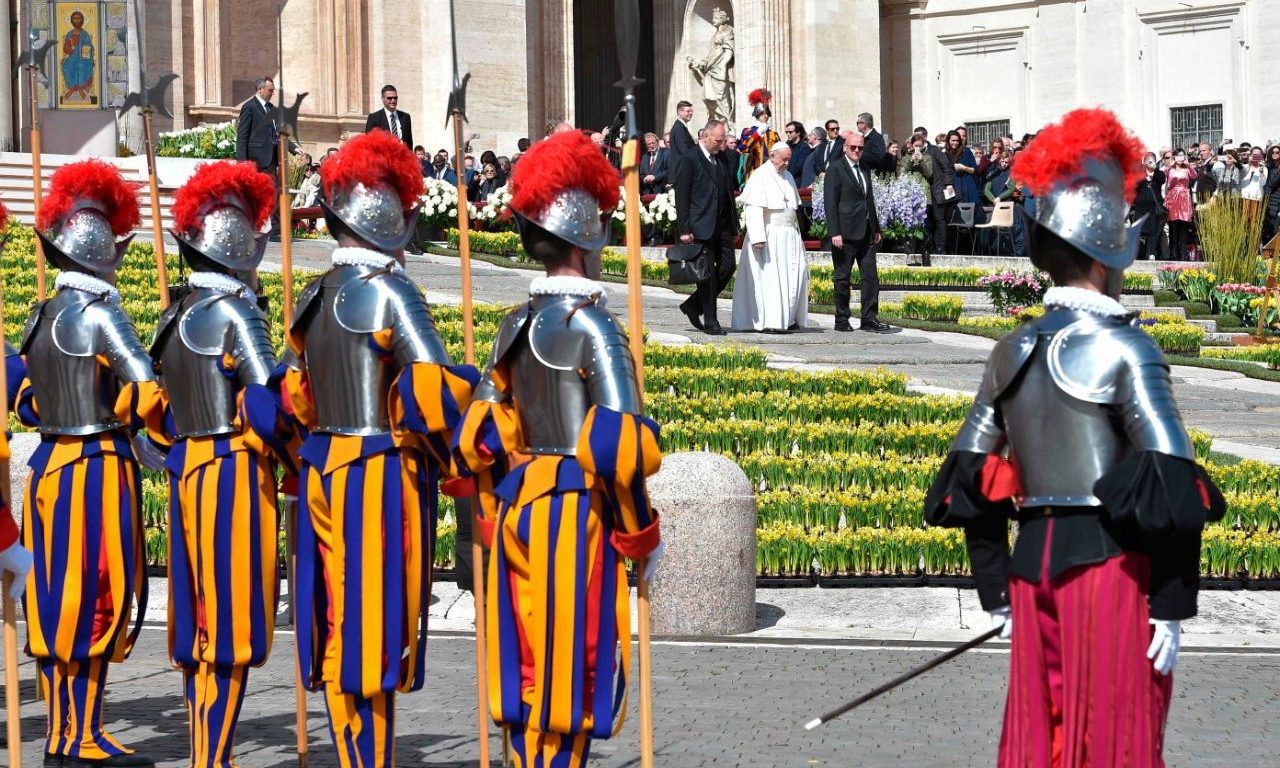 En la mañana de este sábado 6 de mayo, el Papa Francisco recibió en el Palacio Apostólico del Vaticano a los 23 nuevos miembros de la Guardia Suiza, que realizan esta tarde el juramento de lealtad al Papa y a la Iglesia Católica.