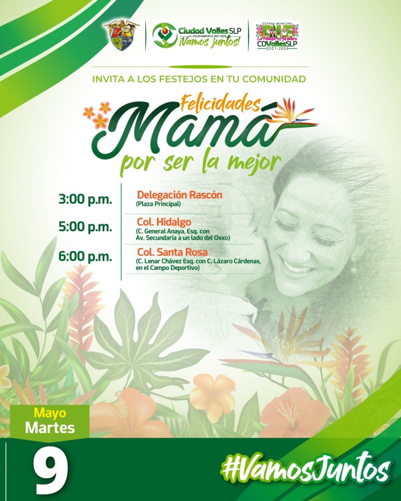 Como se llevó a cabo durante 2022, este año el gobierno de Ciudad Valles recorrerá los sectores del municipio para festejar a las mamás del municipio, mediante una caravana de eventos que comenzarán este 9 de mayo.
