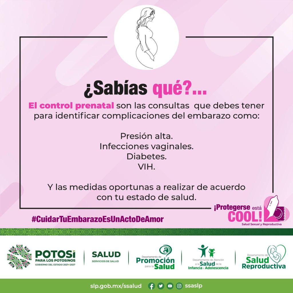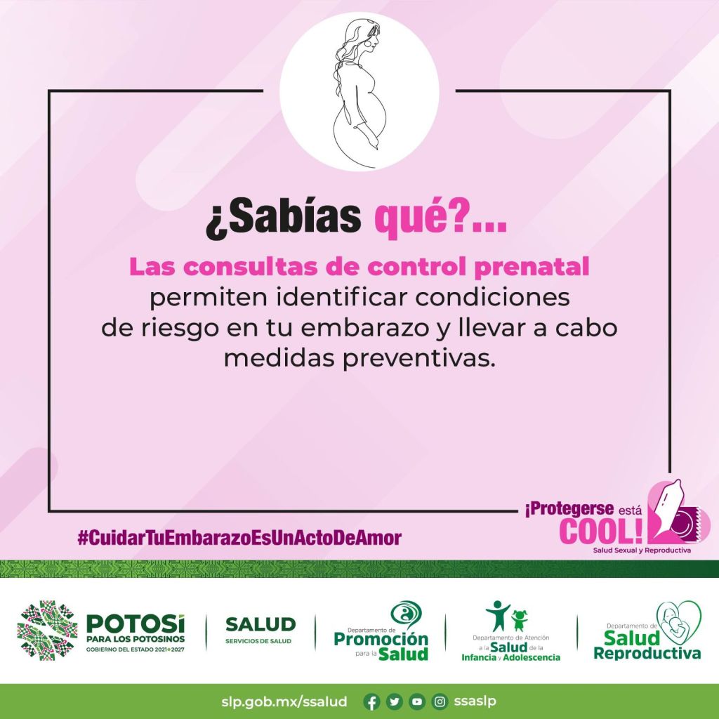En los Servicios de Salud de San Luis Potosí se cuenta con atención y servicios específicos para los cuerpos gestantes tales como: las consultas de atención pregestacional, es decir, se debe acudir tres meses antes del embarazo, para recibir información, orientación y asesoría para la valoración del estado general de salud de la persona con deseo de concepción; las consultas prenatales, en las que se recibirá información, orientación y asesoría durante todo el embarazo.