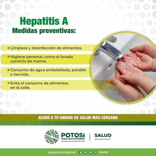 Dijo que este padecimiento, es una inflamación del hígado que puede causar morbilidad de moderada a grave y esta se transmite principalmente cuando una persona no infectada ingiere agua o alimentos contaminados por heces de una persona infectada. En abril, se registraron tres casos probables por parte del personal del Hospital Básico Comunitario de Tamazunchale en la comunidad de Pezmayo, se investigó e hicieron las acciones correspondientes informativas sobre prevención, y además de la Jurisdicción Sanitaria VI acudieron a centros educativos para informar sobre síntomas y medidas preventivas de la enfermedad.