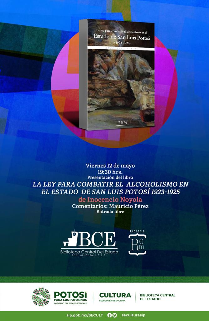La Secretaría de Cultura de San Luis Potosí, invita a la presentación del libro Noyola “La ley para combatir el alcoholismo en el estado de San Luis Potosí”, la obra más reciente del investigador potosino Inocencio, y que se llevará a cabo este viernes 12 de mayo a las 19:30 horas, en la Biblioteca Central del Estado, entrada libre.
