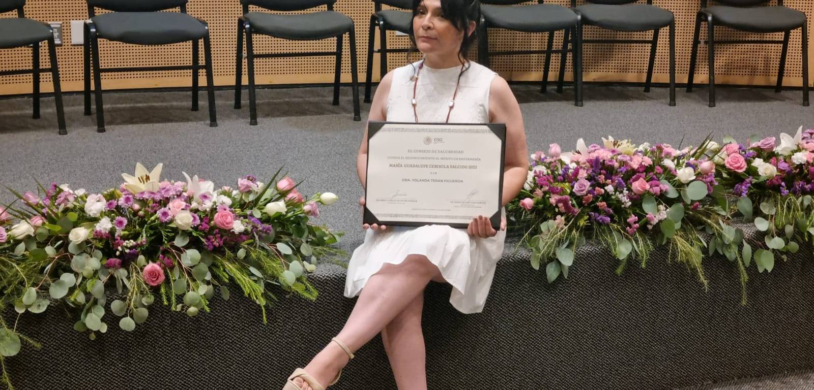 La doctora Yolanda Terán Figueroa, investigadora y docente de la Facultad de Enfermería y Nutrición de la UASLP, fue galardonada con el Reconocimiento en Enfermería “María Guadalupe Cerisola Salcido”, otorgado por el Consejo de Salubridad Nacional.