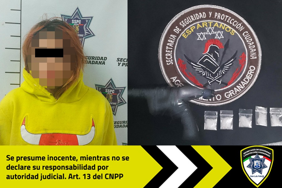 Gracias a la efectiva presencia de agentes municipales de la Secretaría de Seguridad y Protección Ciudadana (SSPC) en los diferentes cuadrantes de la Capital, se llevó el aseguramiento de una mujer que al ver la unidad policial se deshizo de un arma de fuego de fabricación casera y en revisión preventiva de seguridad le fueron encontrados cinco bolsas que contenían sustancia granulada con las características de la metanfetamina.