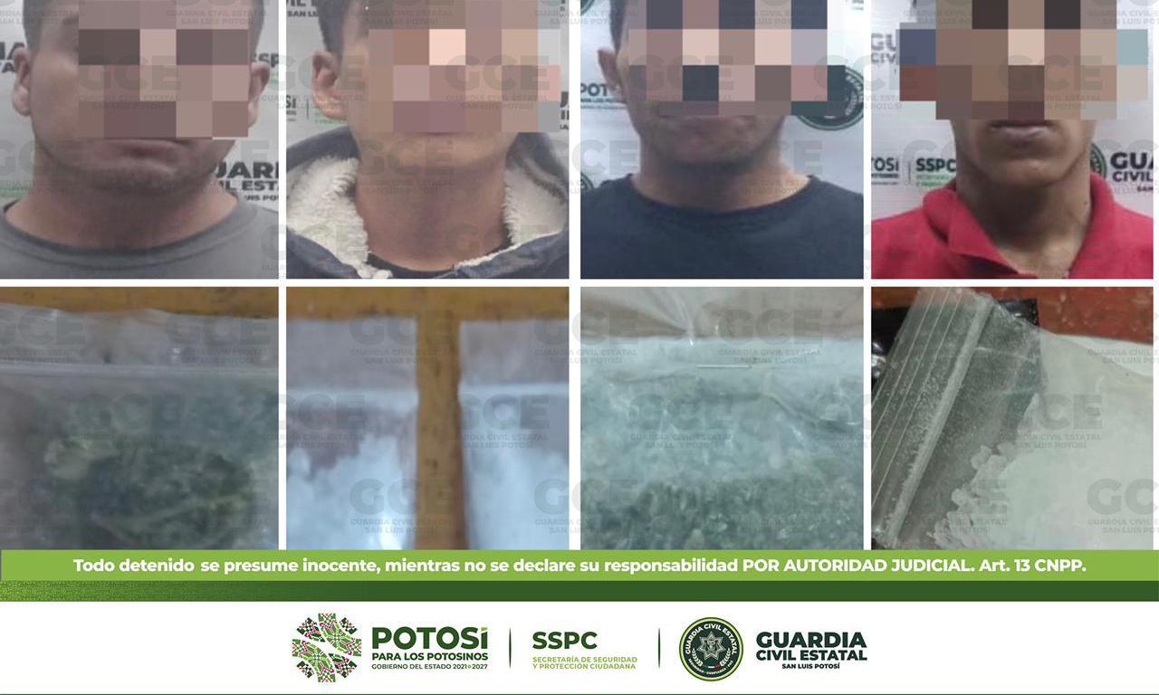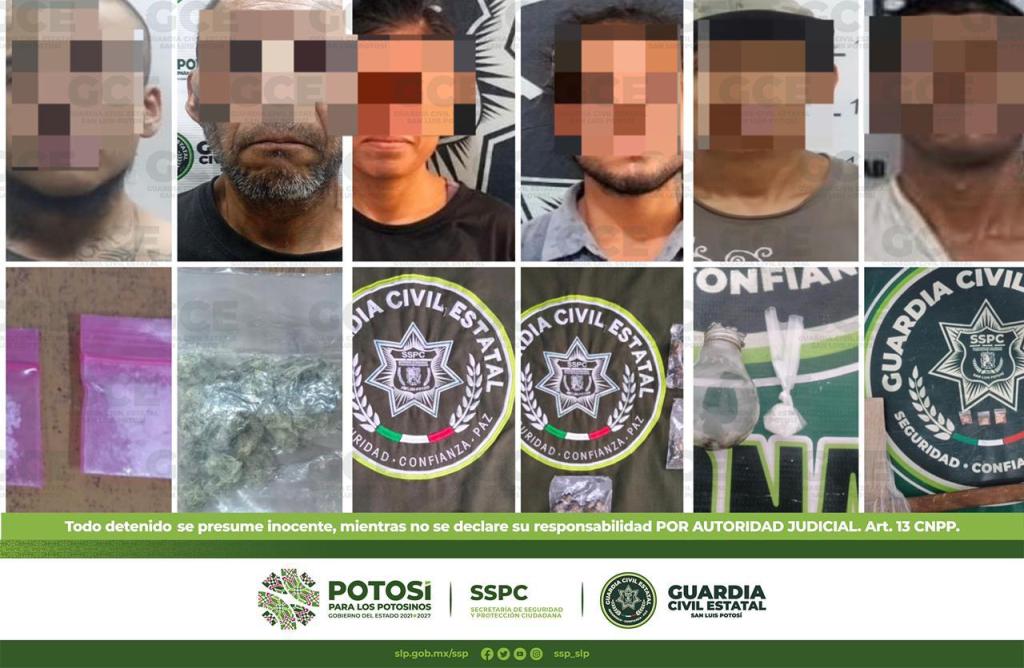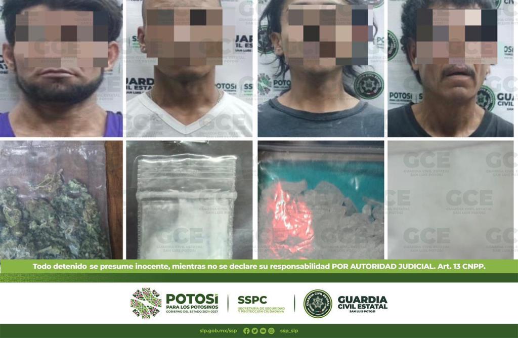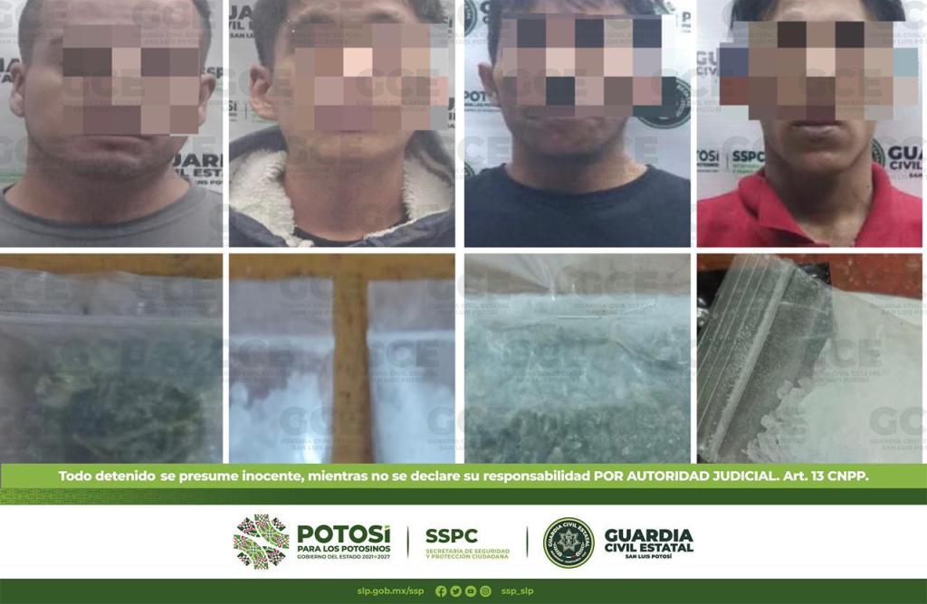 Como parte de las acciones operativas desdobladas en los 58 municipios de la Entidad potosina, para generar un ambiente libre de violencia y del consumo de sustancias nocivas, un total de 14 personas fueron detenidas por elementos de la Guardia Civil Estatal (GCE) por la probable posesión de marihuana y “cristal”.