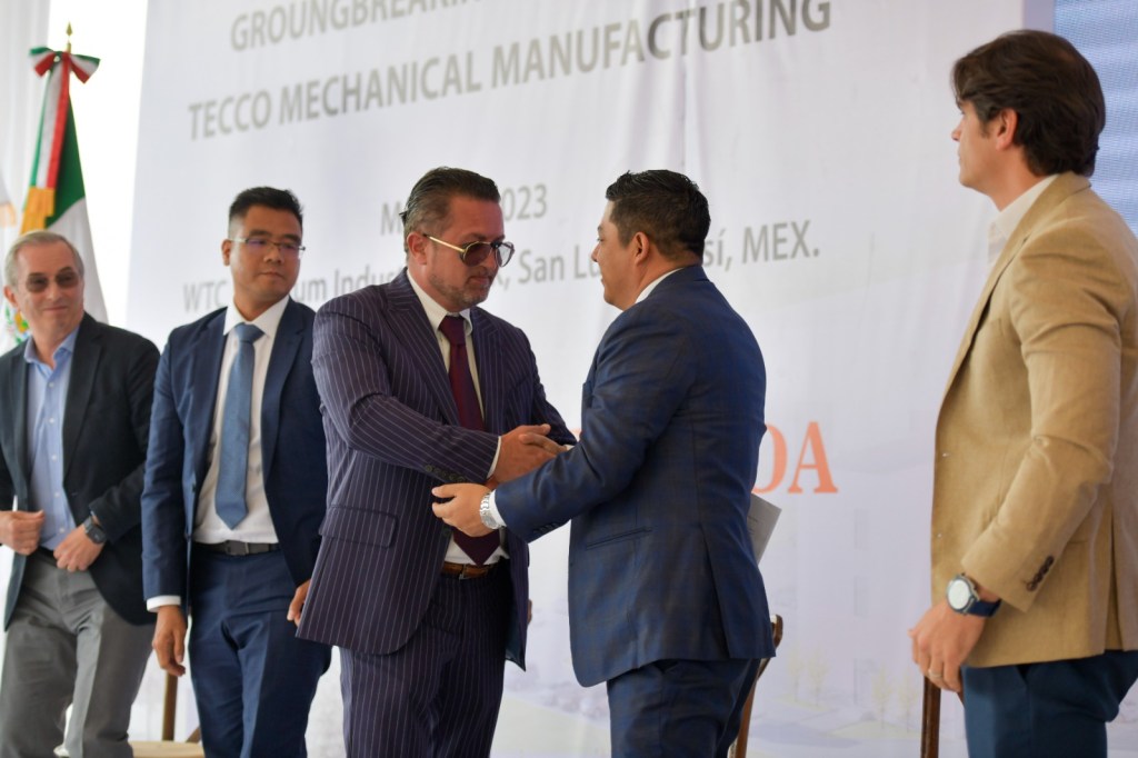 Acompañado del presidente de TECCO México, Ionut Buzelan, el director del parque industrial WTC, Michele Porrino Pelassi, y otros directivos de la empresa que fabricará moldes y equipamiento para neumáticos, con una inversión de 42 millones de dólares (732 Millones de pesos), el Jefe del Ejecutivo Estatal, agradeció a la empresa por apostarle a San Luis Potosí y sumarse al engrandeciendo el clúster automotriz e industrial.
