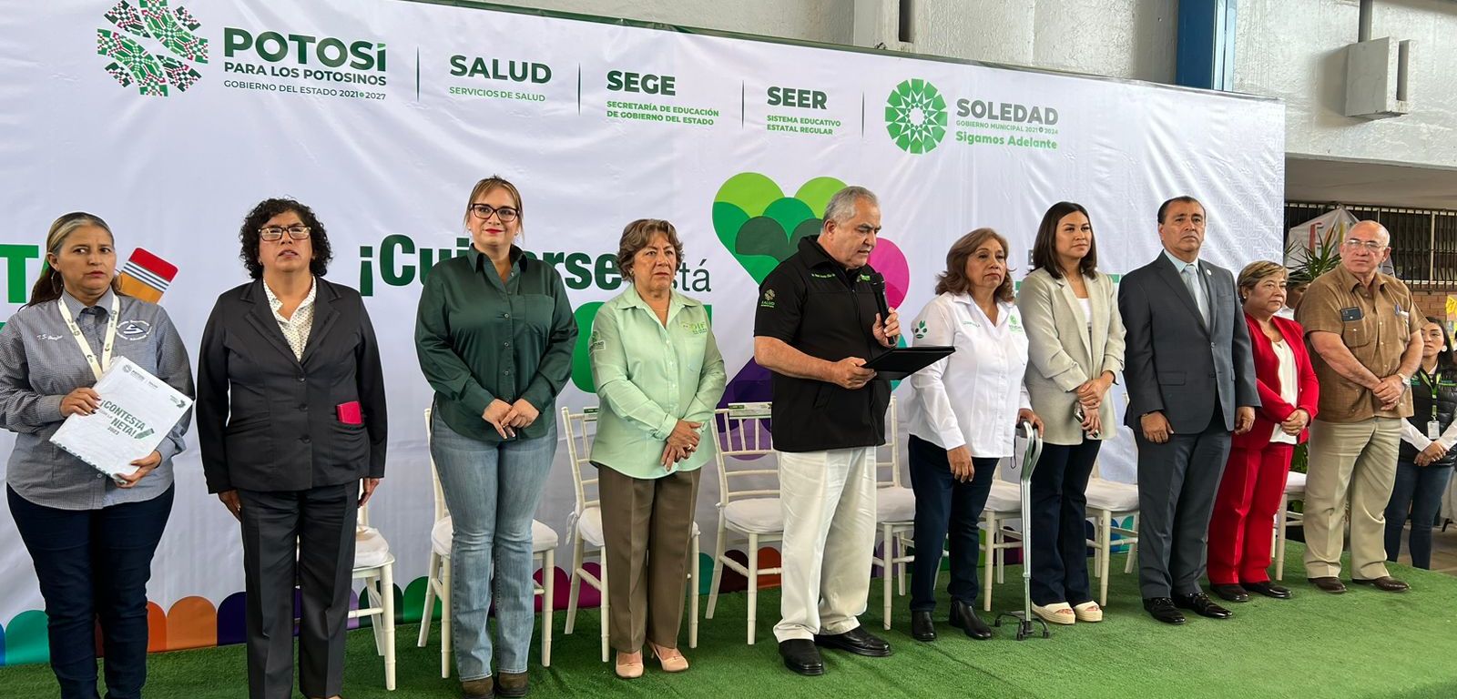 El evento de arranque de la encuesta se realizó en las instalaciones de la Escuela Secundaria Graciano Sánchez Romo, del municipio de Soledad de Graciano Sánchez, con la presencia de los titulares de la Secretarias de Salud, SEGE, SEER, DIF Estatal, y Secretaria de Cultura, entre otros.