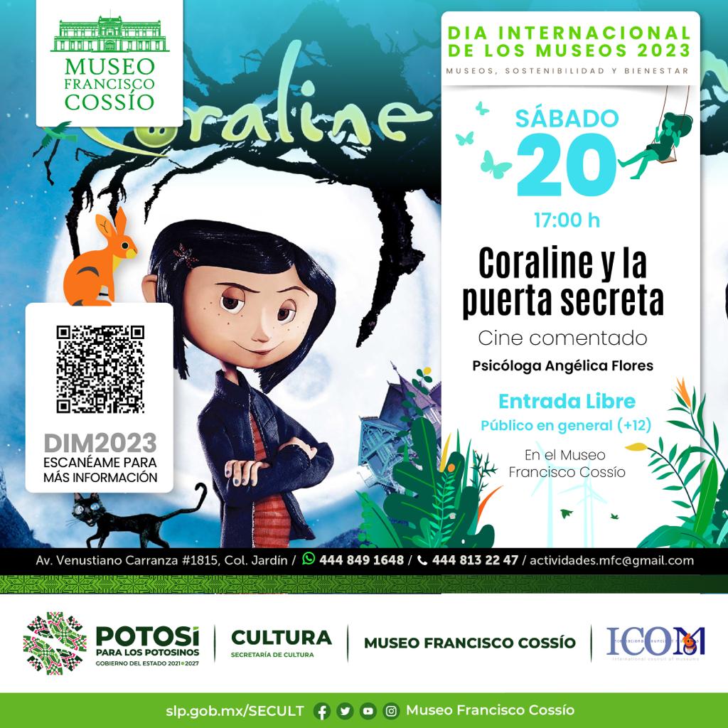 En el marco de las actividades para celebrar el Día Internacional de los Museos, la Secretaría de Cultura de San Luis Potosí, invita al público a disfrutar de la proyección del ciclo Cine Comentado en el Museo Francisco Cossío, el sábado 20 y domingo 21 de mayo, con las cintas Cartas de Van Gogh, Coraline y la puerta secreta e Intensamente, una oportunidad para explorar temas relevantes relacionados con la psicología, la adolescencia, la depresión y el suicidio en personas adultas, y cómo superar estos desafíos a través del arte y los espacios recreativos como los museos.