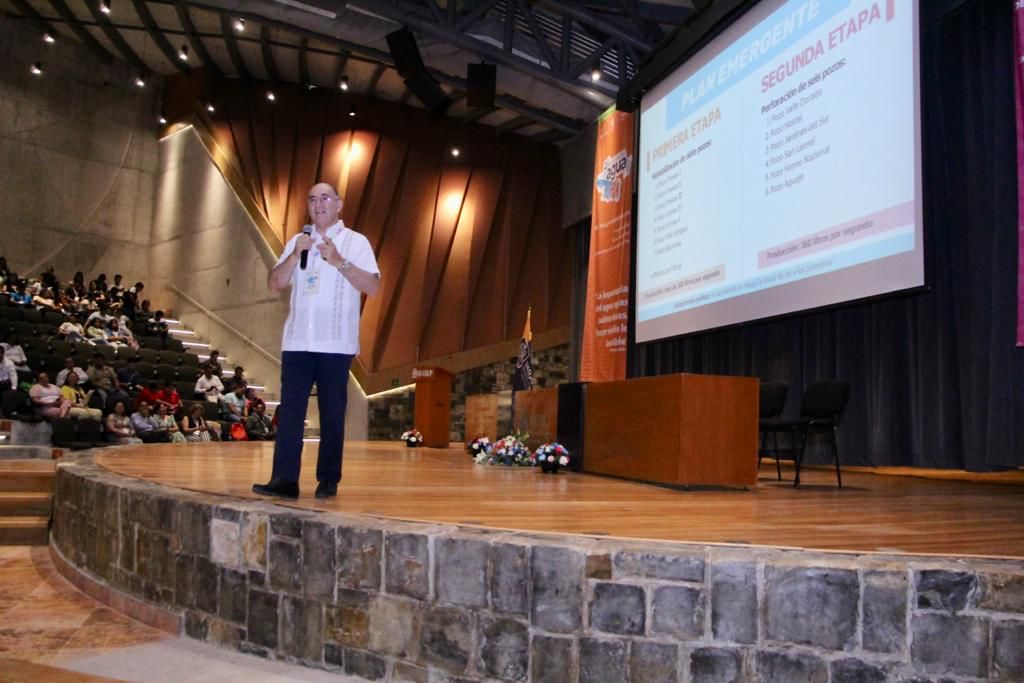 Ante investigadores, especialistas y alumnos expuso las obras y los avances del Plan Emergente de Agua.