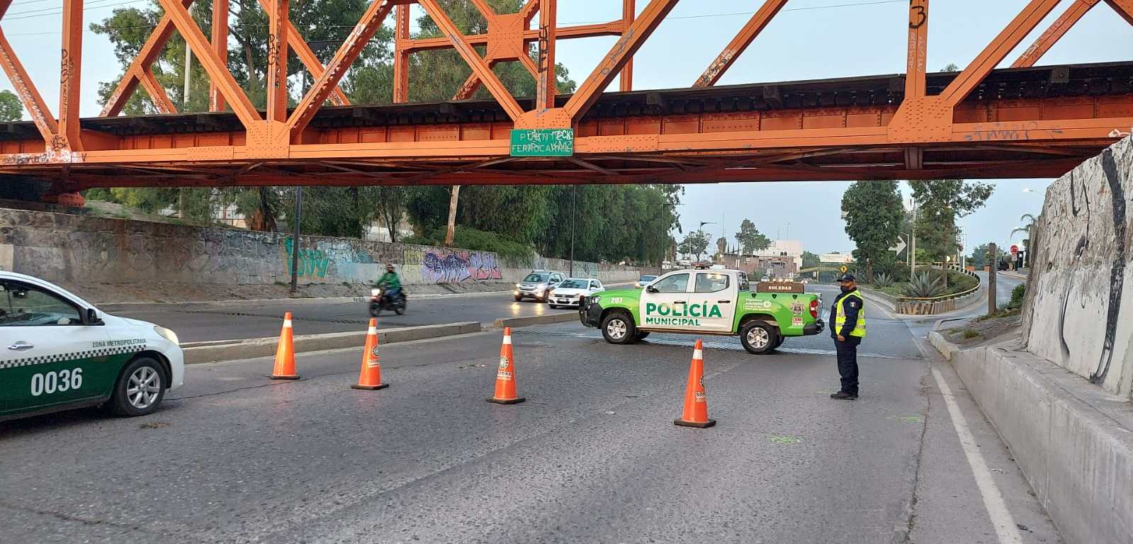 • Cierre en Carretera Matehuala con orientación al Sur, en ingreso a Río Santiago a un costado de la empresa GAMESA, para dirigir el tráfico a Acceso Norte o hacia el Distribuidor Juárez.