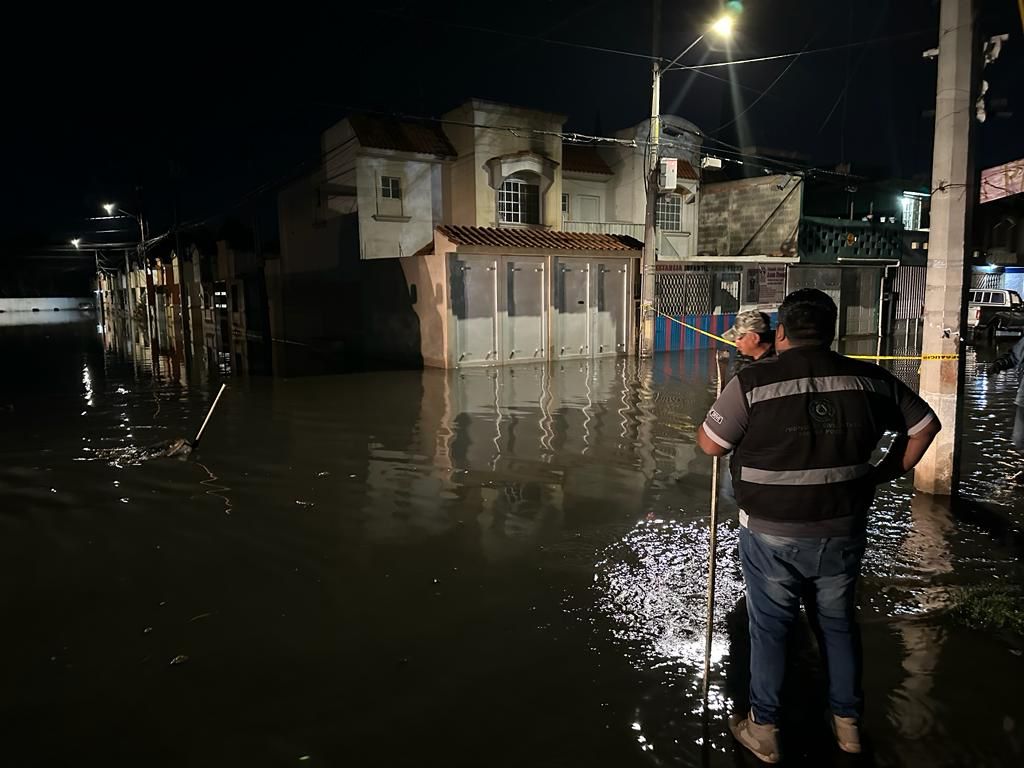Además, se atendieron encharcamientos en algunas colonias, como en el fraccionamiento San Lorenzo en la calle Santander, donde el nivel del agua llegaba arriba de la banqueta, afectando 20 viviendas y se apoyó levantando alcantarillas para que disminuyera el nivel.