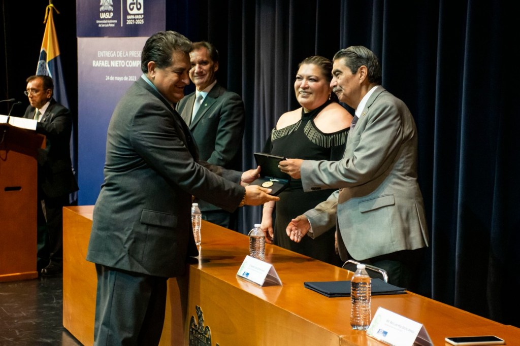 La Universidad Autónoma de San Luis Potosí y la Unión de Asociaciones de Personal Académico (UAPA) de la UASLP, entregaron la Presea “Rafael Nieto Compeán”, a docentes, a quienes se les reconoció antigüedad institucional desde los 28 hasta los 45 años de servicio en la Institución.