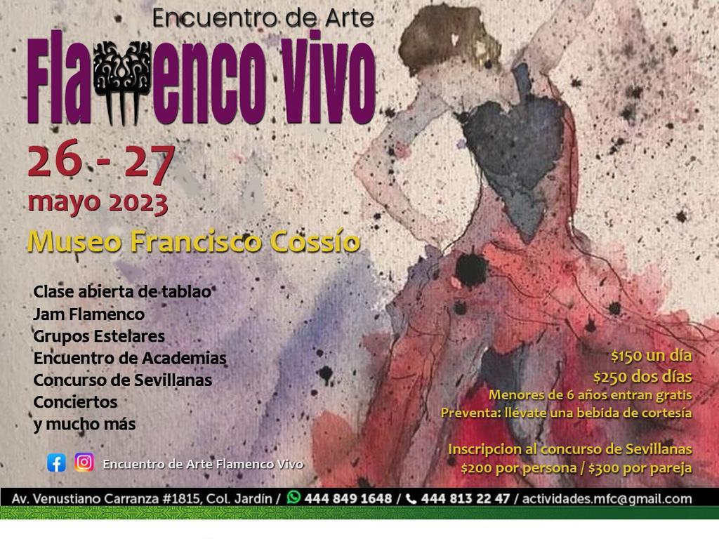 La Secretaría de Cultura de San Luis Potosí, invita al público en general a participar en el Encuentro de Arte «Flamenco Vivo» en su segunda edición que se llevará a cabo este viernes 26 y el sábado 27 de mayo en el Museo Francisco Cossío, resultado de un esfuerzo colaborativo con Luna Cabal Asociación Cultural y el Centro de Arte Flamenco Luna Cabal.