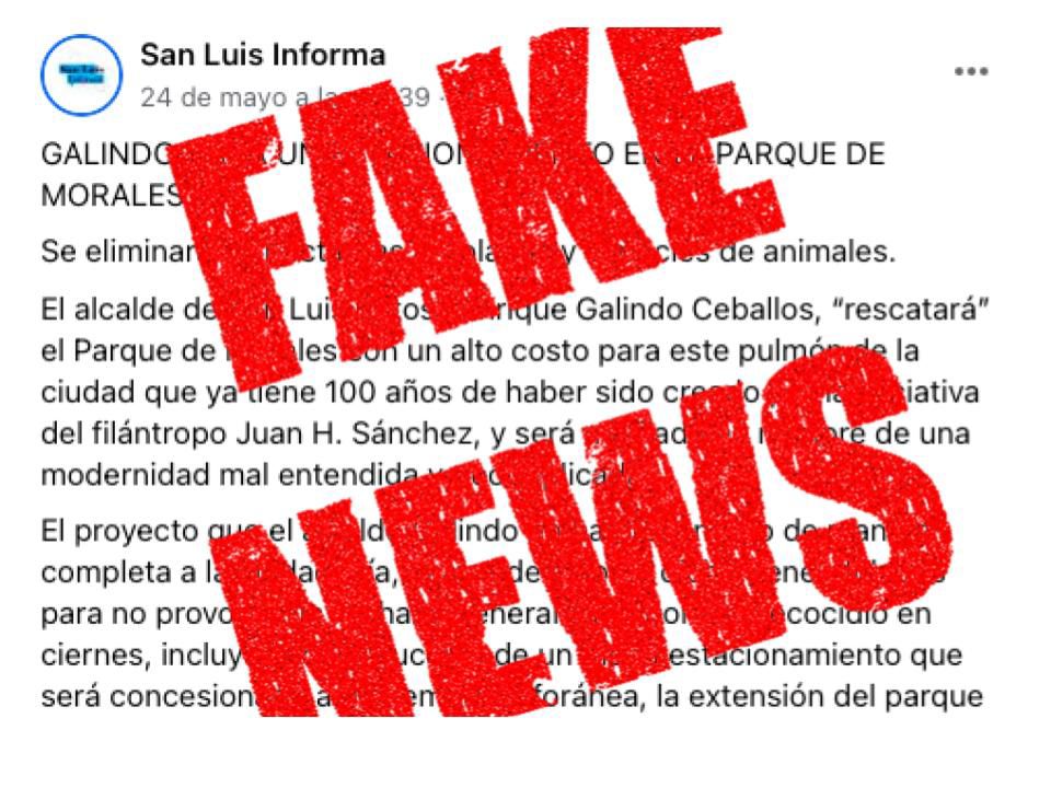 Tan solo en la última semana, páginas falsas de redes sociales se inventaron un proyecto para convertir el Parque de Morales en un estacionamiento público, cuando la realidad es que el Ayuntamiento de San Luis Potosí trabaja en la rehabilitación y reforestación de ese espacio, en camino a su centenario, que se cumplirá el próximo año.