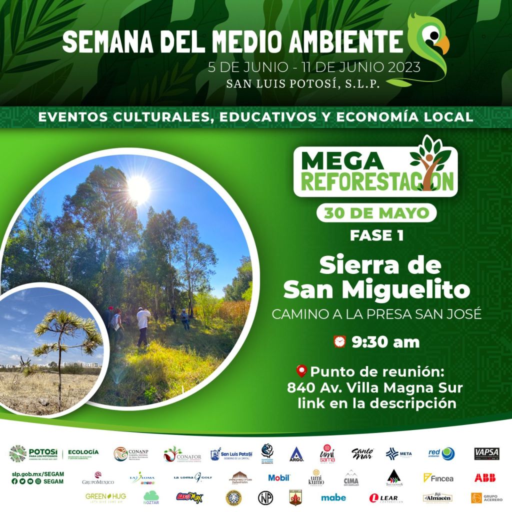 El titular de la dependencia estatal, Emmanuel Ramos Hernández, dijo que por instrucción del Gobernador de San Luis Potosí Ricardo Gallardo Cardona, el programa de la Semana del Medio Ambiente, incluye la reforestación del Área Natural Protegida de la Sierra de San Miguelito el día 30 de mayo a las 9:30 horas, con una primera etapa donde serán plantados 200 mil arbolitos, pino, mezquite, huizache y encino, mientras que en el resto de las cuatro regiones del Estado con especies endémicas.