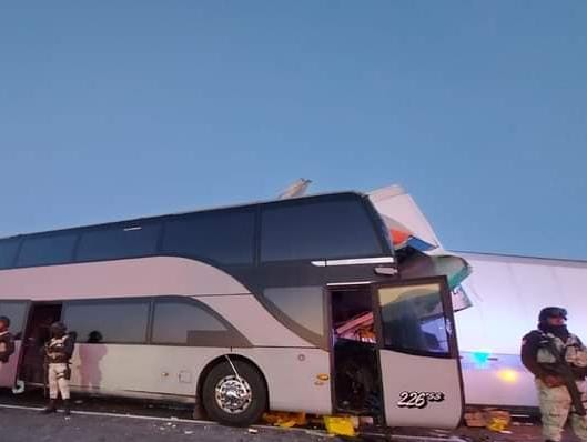 El percance ocurrió en la mañana del día de hoy cuando el autobús de pasajeros se fue a incrustar en un tráiler, estos hechos ocurrieron en el kilometro 137 en el tramo del Huizache del municipio del tan mencionado municipio de Matehuala.