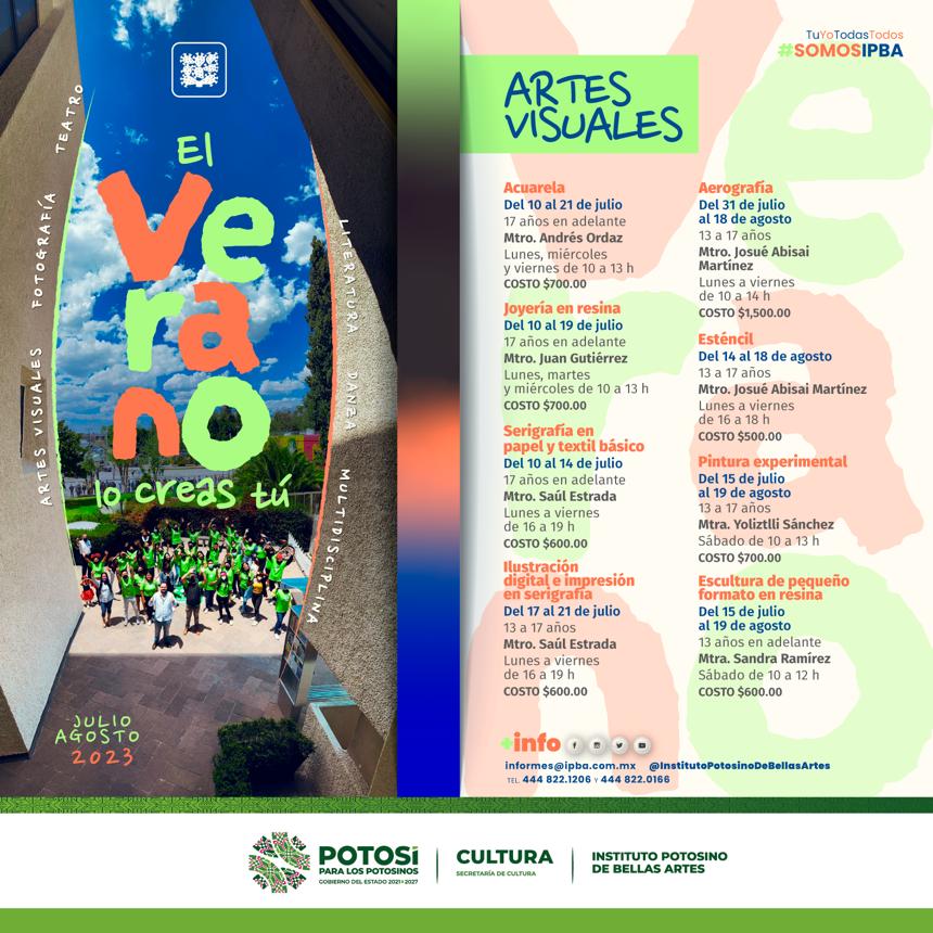 La Secretaría de Cultura de San Luis Potosí invita a los más de 20 cursos de verano que ofrece el Instituto Potosino de Bellas Artes para el próximo periodo vacacional, accesibles en horarios, costos y edades.