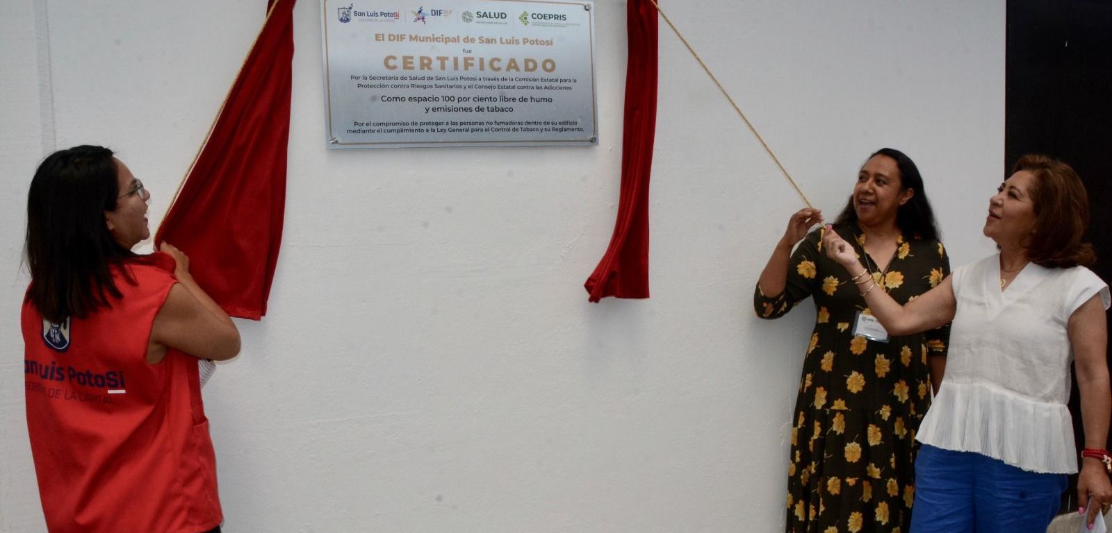 En el marco del «Día Mundial sin Tabaco», la Presidenta del Sistema Municipal DIF, Estela Arriaga Márquez, develó la placa correspondiente a la Certificación de las instalaciones de esta institución como «Espacio Libre de Humo de Tabaco».