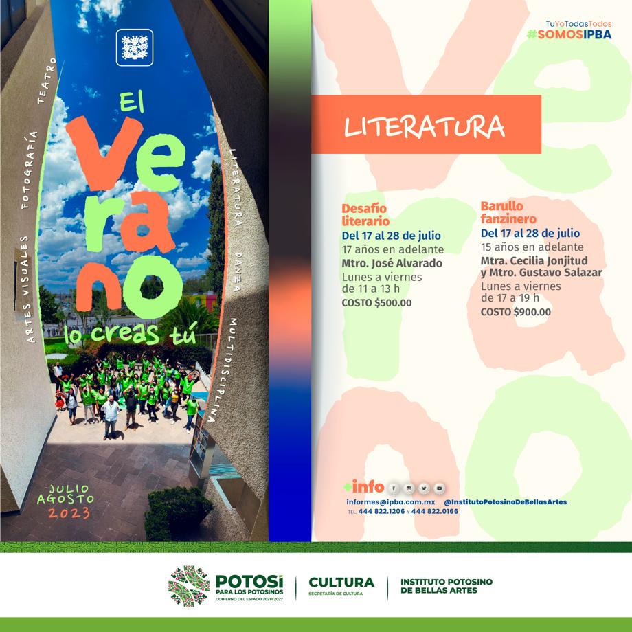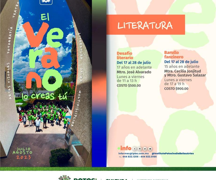 Como parte de la política delineada en el Plan Estatal de Desarrollo impulsado por el Nuevo Gobierno, para acercar a las y los potosinos a la cultura y las artes, la Secretaría de Cultura de Gobierno del estado, invita al público en general a los más de 20 cursos que propone el Instituto Potosino de Bellas Artes (IPBA) para este próximo verano.