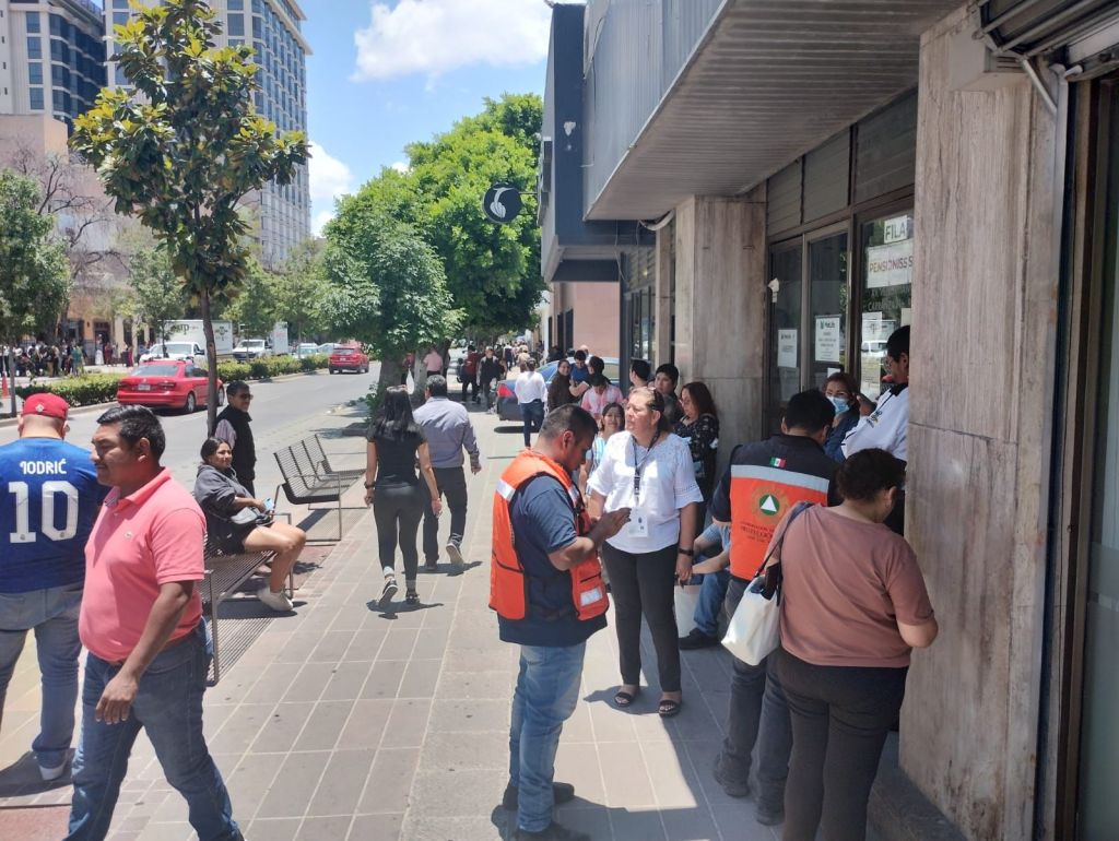 Detalló que en la avenida Venustiano Carranza, en el Edificio Puga, 480 personas fueron evacuadas; del edificio La Madrid, 160 personas; del edificio M, otras 130 personas y del Instituto Nacional de Estadística y Geografía (INEGI), 330 personas. Adicionalmente, la dependencia realizó un recorrido en plaza San Luis, donde se reportó la sensación de movimiento telúrico, donde había 300 personas, sin mayor afectaciones; mientras que en la Plaza Alttus, se evacuaron a otras 150 personas.