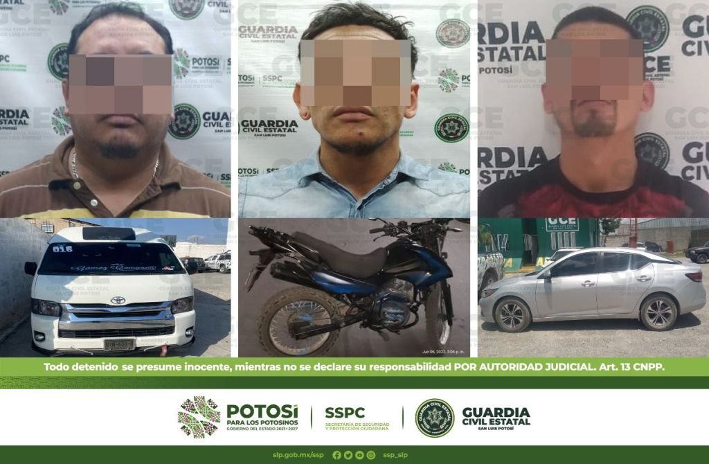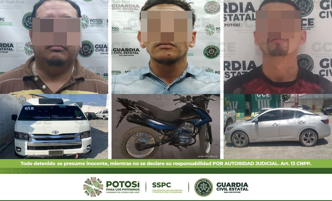 Agentes de la Guardia Civil Estatal lograron recuperar tres vehículos con reporte de robo gracias a los operativos implementados en la zona metropolitana y al interior del estado de San Luis Potosí.