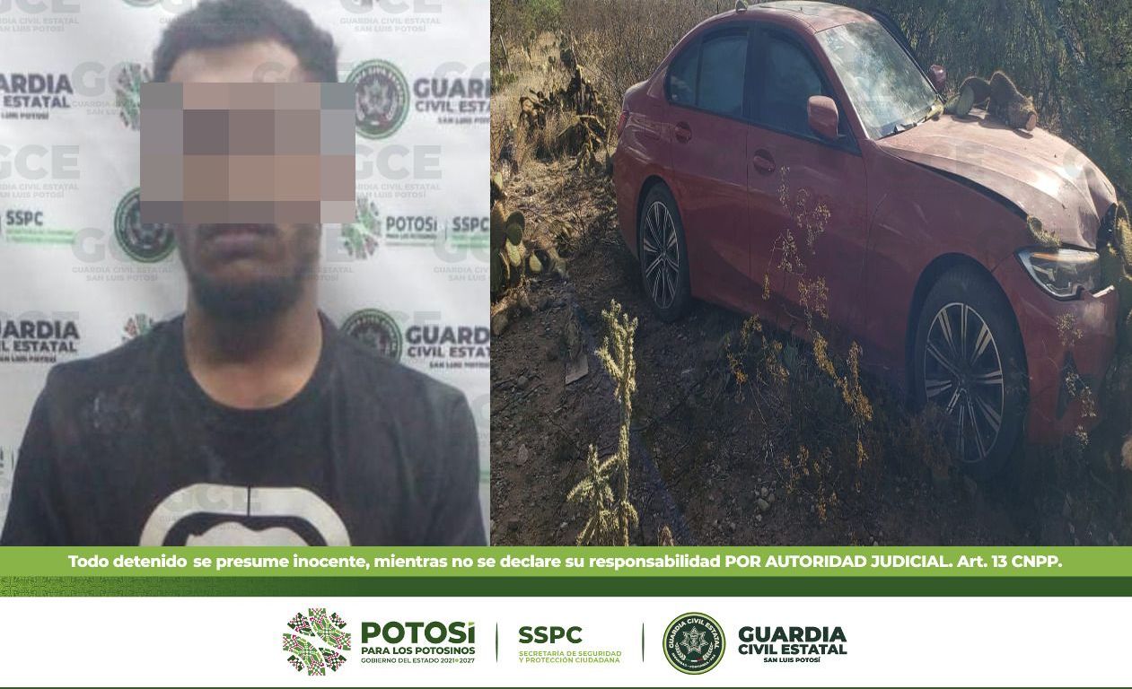 Cuando el conductor notó la presencia de las fuerzas del orden, se desvía sobre la maleza perdiendo el control y es interceptado por los agentes estatales, asegurándose a Luis “N” de 27 años, quien presuntamente manifestó trabajar para un grupo delincuencial y robar vehículos de alta gama para entregarlos por la cantidad de 10 mil pesos.