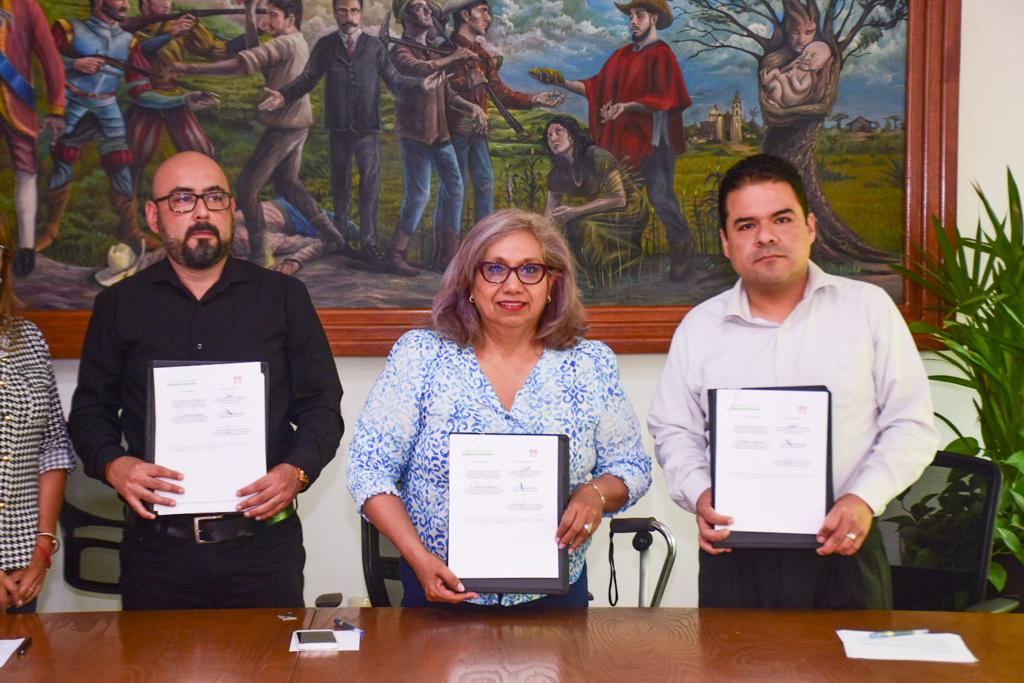 La firma de convenio estuvo encabezada por la Alcaldesa Leonor Noyola Cervantes.