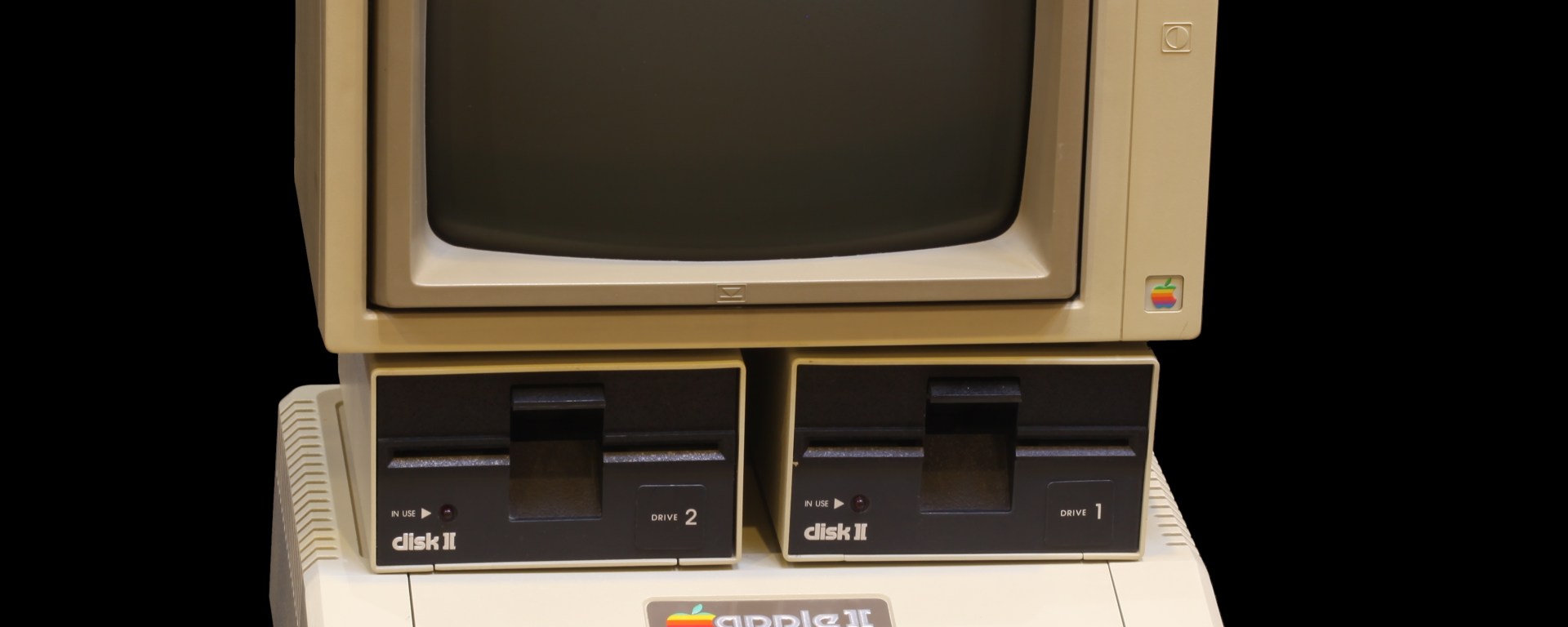 Las primeras computadoras Apple II estuvieron a la venta el 10 de junio de 1977, basadas en un microprocesador 6502 de MOS Technology funcionando a 1 MHz, con 4 KiB de RAM, 12 KiB de ROM con el lenguaje de programación Integer BASIC, y una interfaz para grabadores de casetes de audio.