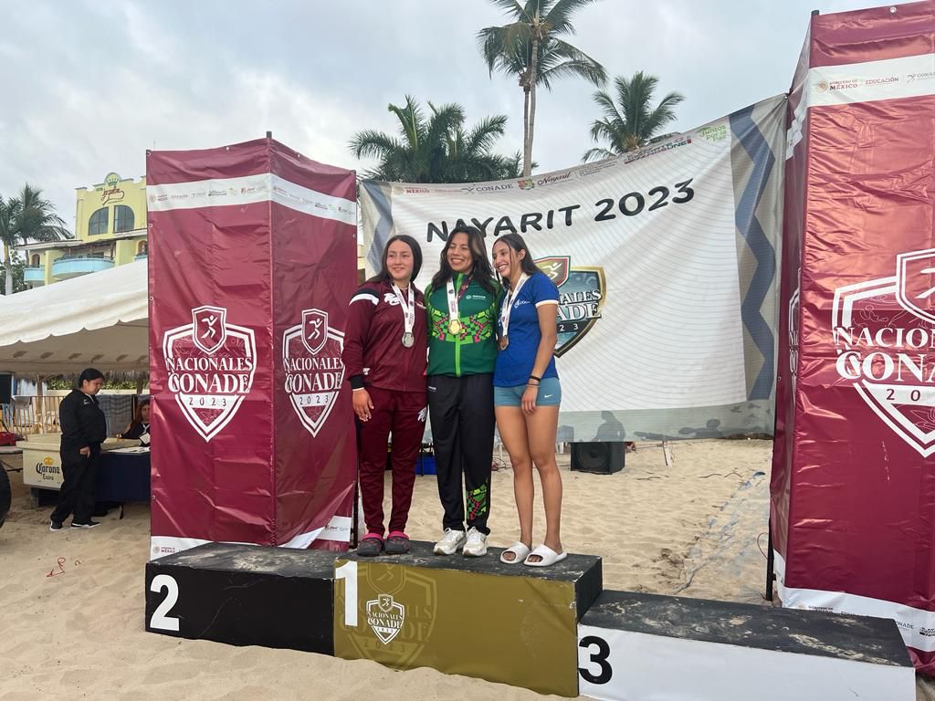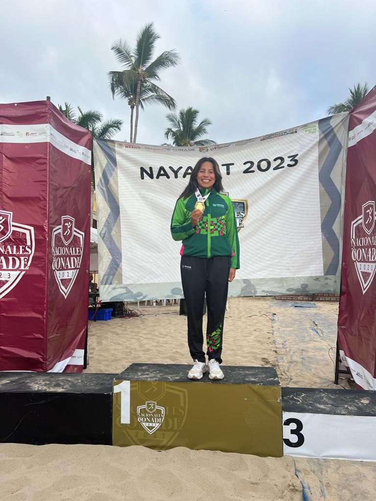 Karla Edith De la Rosa Mondragón, quien se llevó el triunfo en la disciplina de aguas abiertas, modalidad 10 kilómetros, en su participación dentro de los Juegos Nacionales CONADE 2023, al cual acudió con el apoyo del Gobernador del Estado Ricardo Gallardo Cardona.