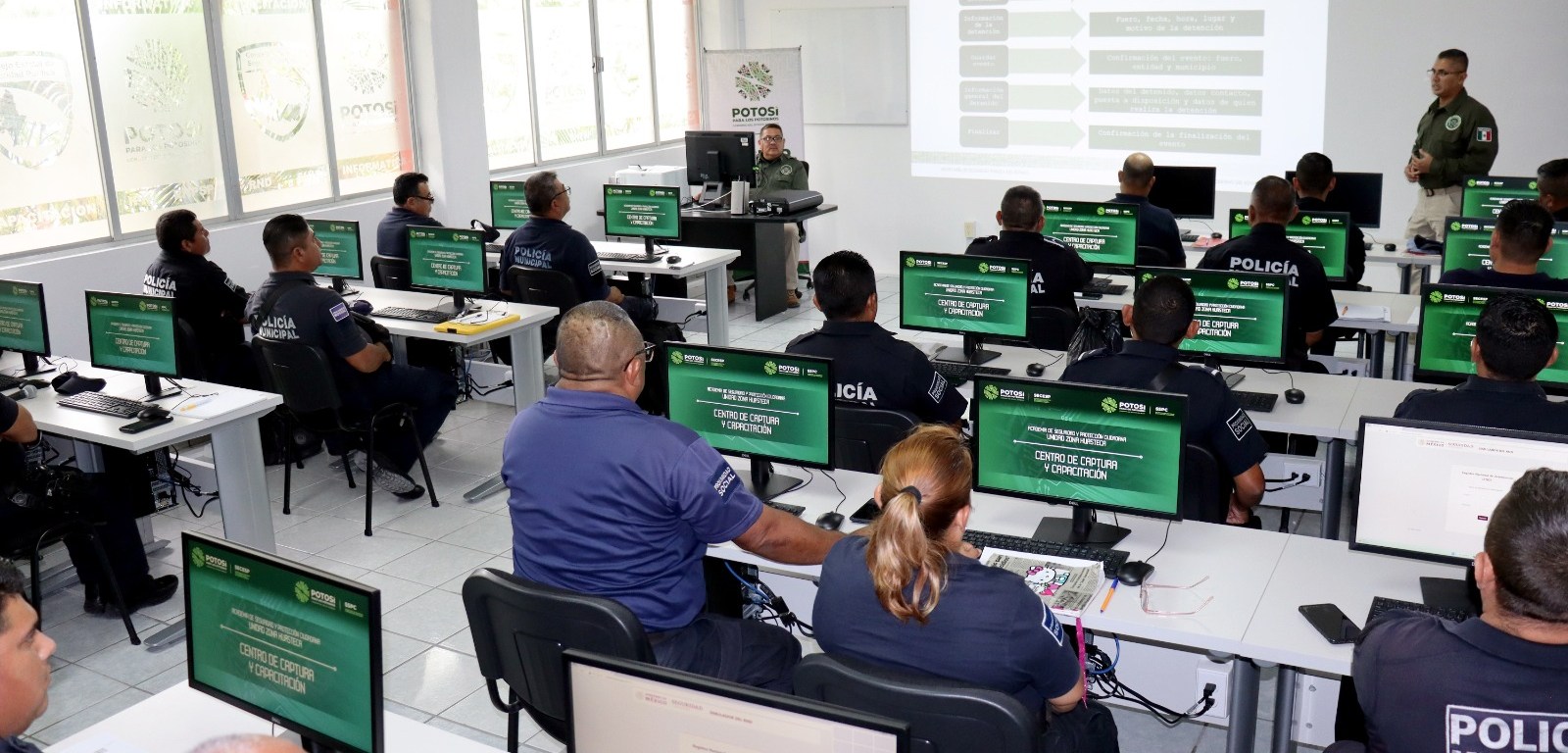El Secretariado Ejecutivo del Consejo Estatal de Seguridad Pública (SECESP), en conjunto con la Academia de Seguridad y Protección Ciudadana, Unidad Zona Huasteca, capacita sobre el Registro Nacional de Detenciones (RND) a policías de 11 municipios de las regiones Media y Huasteca, como parte del trabajo del Gobierno del cambio en materia de formación y profesionalización de las corporaciones policiacas.