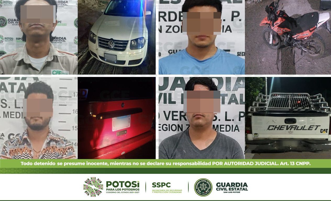 Como parte de las acciones permanentes en materia de seguridad que realizan los elementos de la Guardia Civil Estatal en todo el estado de San Luis Potosí, se apresó a cuatro hombres que presuntamente manejaban en estado inconveniente sus vehículos.