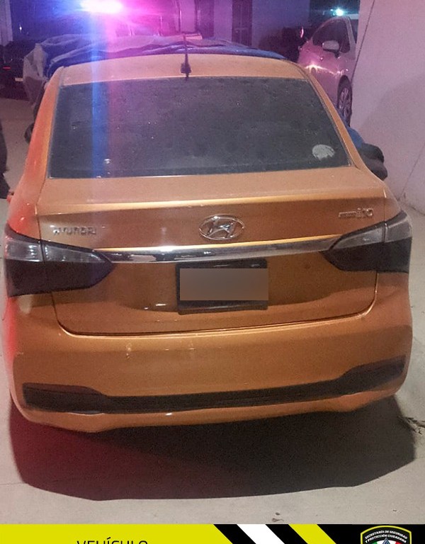 Los oficiales acudieron a las calles Praga y Toronto, donde visualizaron un vehículo sedean marca Hyundai, color naranja, con placas de circulación de Aguascalientes, así mismo al inspeccionarlo, notaron severos daños en la carrocería y parabrisas, además de huellas de desvalijamiento.