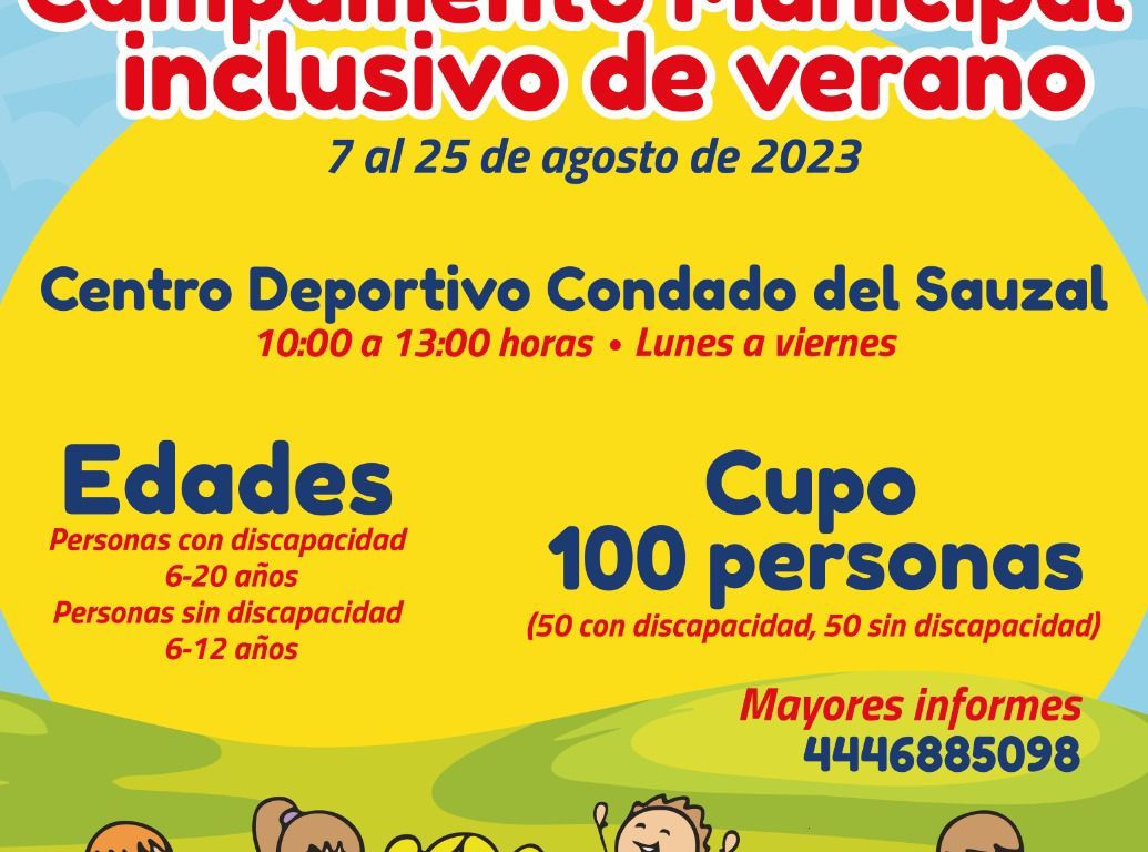 El Campamento Municipal Inclusivo de Verano, se llevará a cabo del 7 al 25 de agosto próximo, pero ahora se realizará en el Centro Deportivo Condado del Sauzal, espacio que cuenta con cancha de césped sintético, cancha techada de baloncesto, trotapista, juegos infantiles, salones de usos múltiples y un espacio de expresión artística al aire libre, con tribuna.