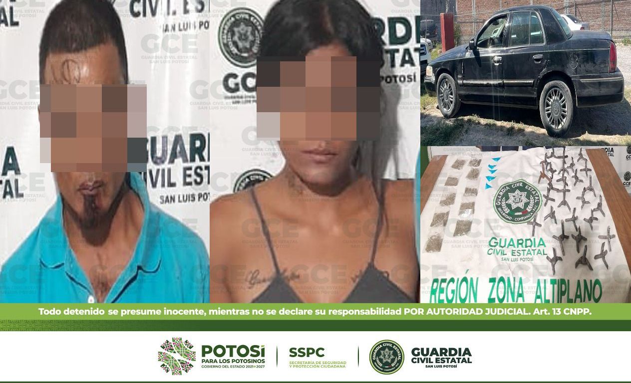 En el marco de las acciones desplegadas en la región Altiplano, a fin de inhibir la venta y consumo de estupefacientes, oficiales de la Guardia Civil Estatal (GCE) detuvieron a dos hombres y una mujer, quienes presumiblemente están relacionados en actividades de narcomenudeo en esta zona.