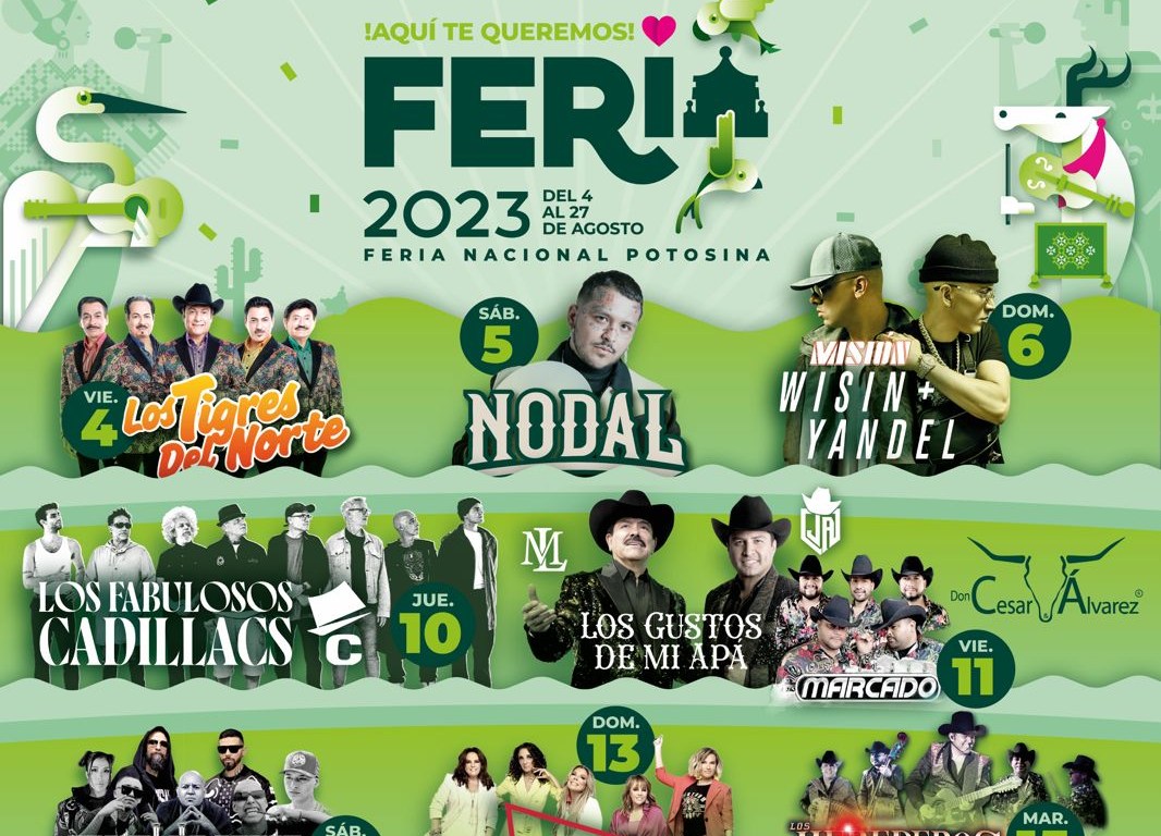 Esta edición contará con novedades como el programa denominado “Fenapo de Noche” para mayores de edad, activaciones recreativas, espectáculo de patinaje sobre hielo y prehispánicos, eventos culturales, presentaciones musicales, espectáculos de danza y teatro; además de juegos, entrada y estacionamiento gratuitos. Mientras que, en la variedad artística gratuita en el Teatro del Pueblo, incluye a Los Fabulosos Cadillacs, Sebastián Yatra, Wisin y Yandel, Los Tigres del Norte, Christian Nodal, Grupo Firme, Banda MS, Alejandro Fernández, Junior H, Espinoza Paz, Cartel de Santa, Molotov, Flans y Pandora, así como Kim Loaiza y DJ Pantoja, más algunos más que serán anunciados en próximos días.