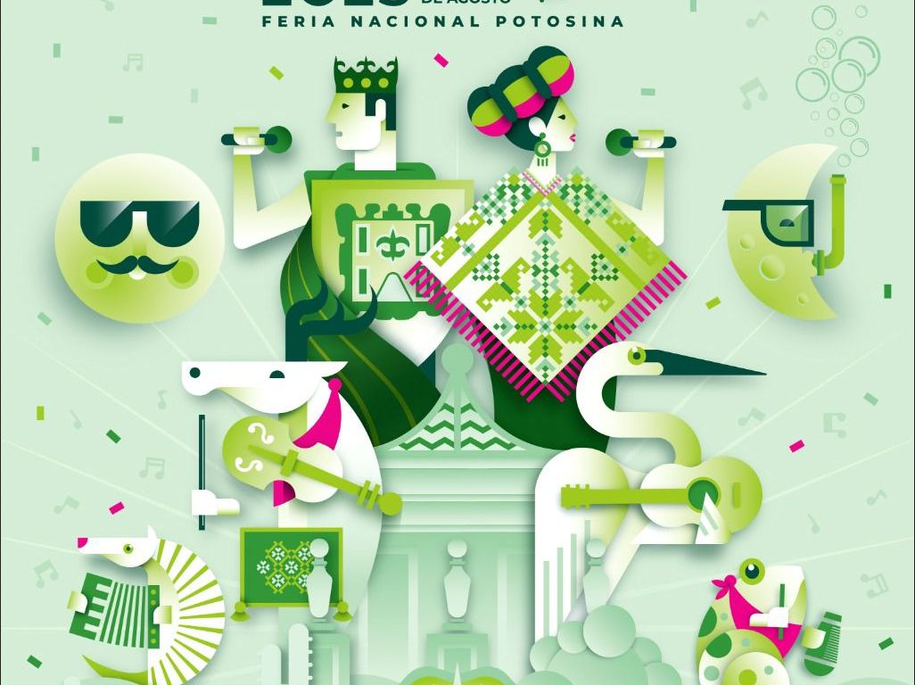 Resultado de la visión integradora y del apoyo a las y los potosinos que se ha logrado con la actual administración estatal, el nuevo cartel de la de la Feria Nacional Potosina (Fenapo) 2023, integra en su diseño elementos que caracterizan al Estado, la cultura, historia, el contraste de la flora y fauna de las regiones con una presentación de música y fiesta que caracteriza las festividades de San Luis Rey de Francia.
