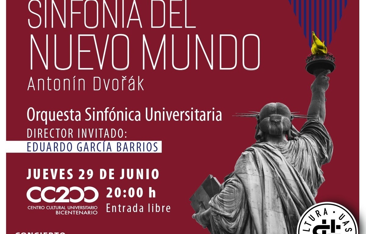 “Sinfonía del Nuevo Mundo”, forma parte de la temporada 2023 de la Orquesta Sinfónica Universitaria, que en esta ocasión tendrá como director huésped invitado a Eduardo García Barrios, director artístico y musical, quien junto a la joven orquesta universitaria, interpretará la popular obra del reconocido compositor checo Antonin Dvořák, sinfonía que está inspirada en la música indígena de Estados Unidos y en el folclor de su país.