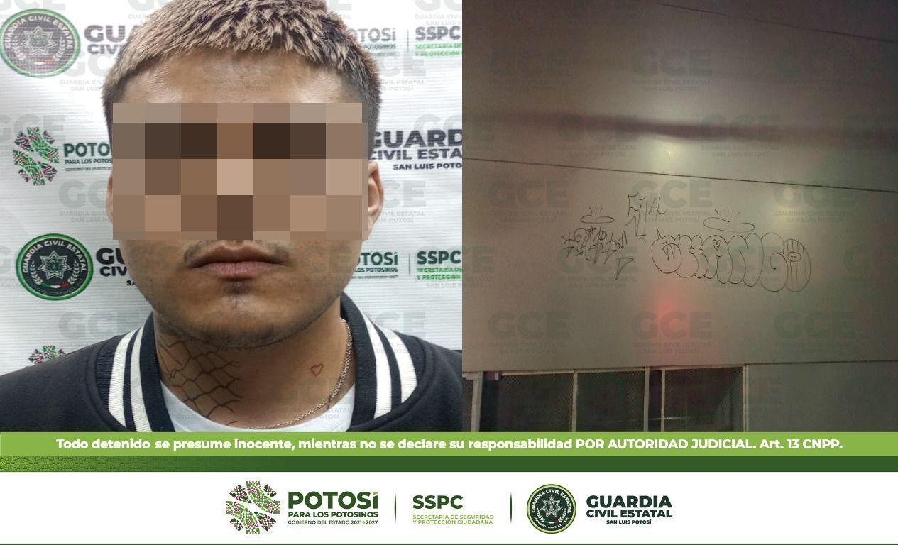 Un reporte atendido en el Sistema de Emergencias 911 permitió que autoridades de la Guardia Civil Estatal (GCE) detuvieran a un joven, quien fue sorprendido provocando daños con grafiti a un inmueble.