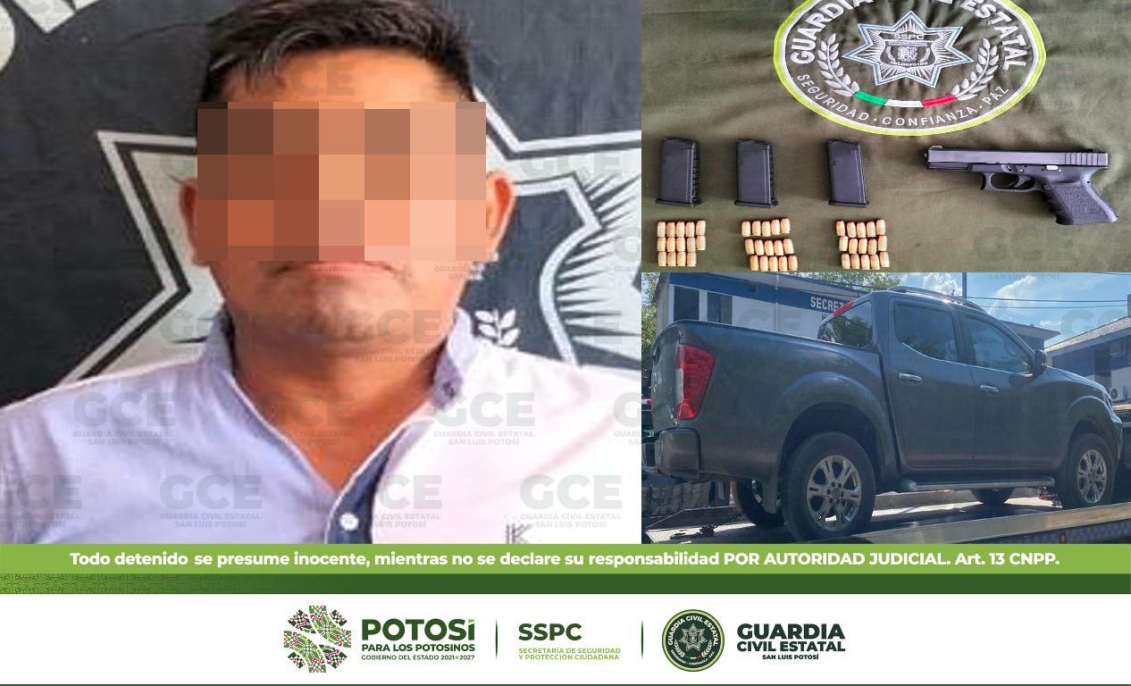 En resultado a los dispositivos permanentes de seguridad, emitidos en el marco del operativo “Huasteca Segura», agentes de la Guardia Civil Estatal (GCE) detuvieron a un hombre por la presunta portación de un arma de fuego; además se le aseguraron 45 cartuchos útiles.