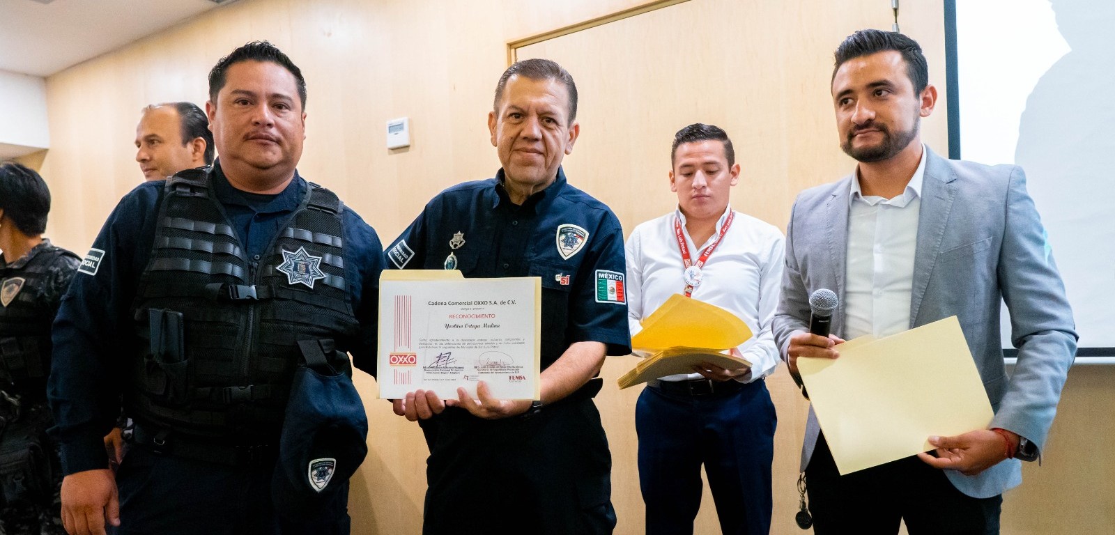 La cadena comercial OXXO reconoció a un total de 80 elementos de la Secretaría de Seguridad y Protección Ciudadana (SSPC) del municipio de San Luis Potosí por su contribución a la disminución en la incidencia de robo a estos establecimientos, así como por la detenciones oportunas de objetivos prioritarios que han sido vinculados a prisión preventiva.