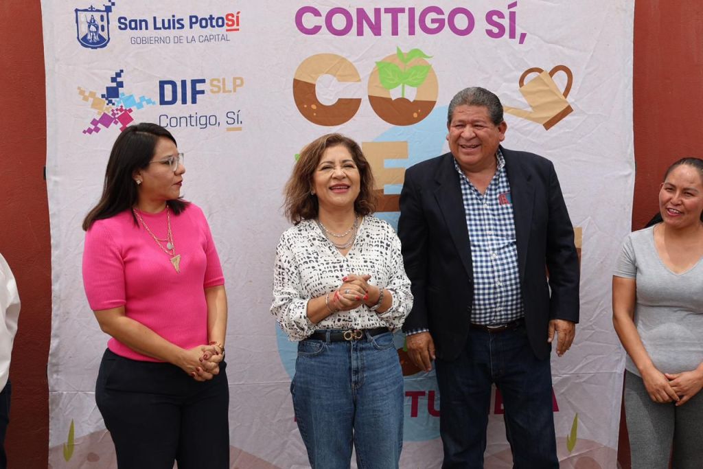 Este huerto «Cosechando para tu mesa» es el número 17 que se instala en comunidades donde es difícil el acceso a diversos alimentos y la necesidad de nutrición es esencial, por lo que además de fomentar la convivencia en el núcleo familiar, es un aliciente para que en los hogares se realice una actividad similar para el auto consumo y así generar ahorro y obtener productos en su beneficio, afirmó Estela Arriaga Márquez, Presidenta del DIF Municipal.