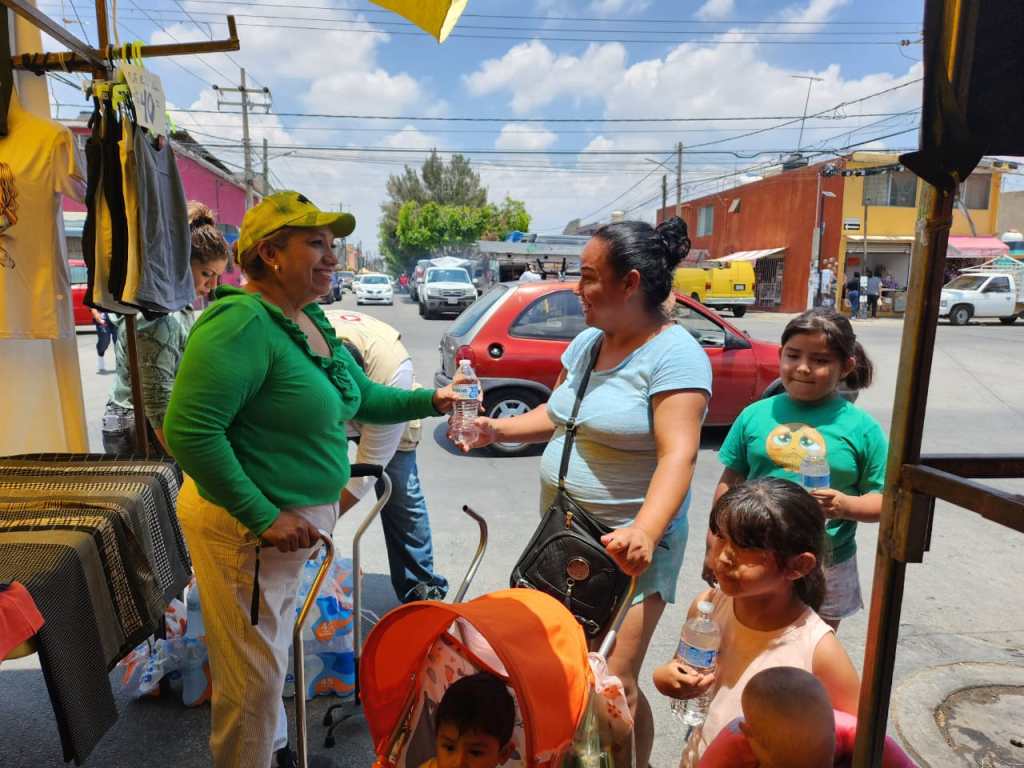 Detalló que a partir de las 9 de la mañana, se entregan cientos de botellas de agua a las personas que acuden a estos mercados como un apoyo a su salud a través de la hidratación.