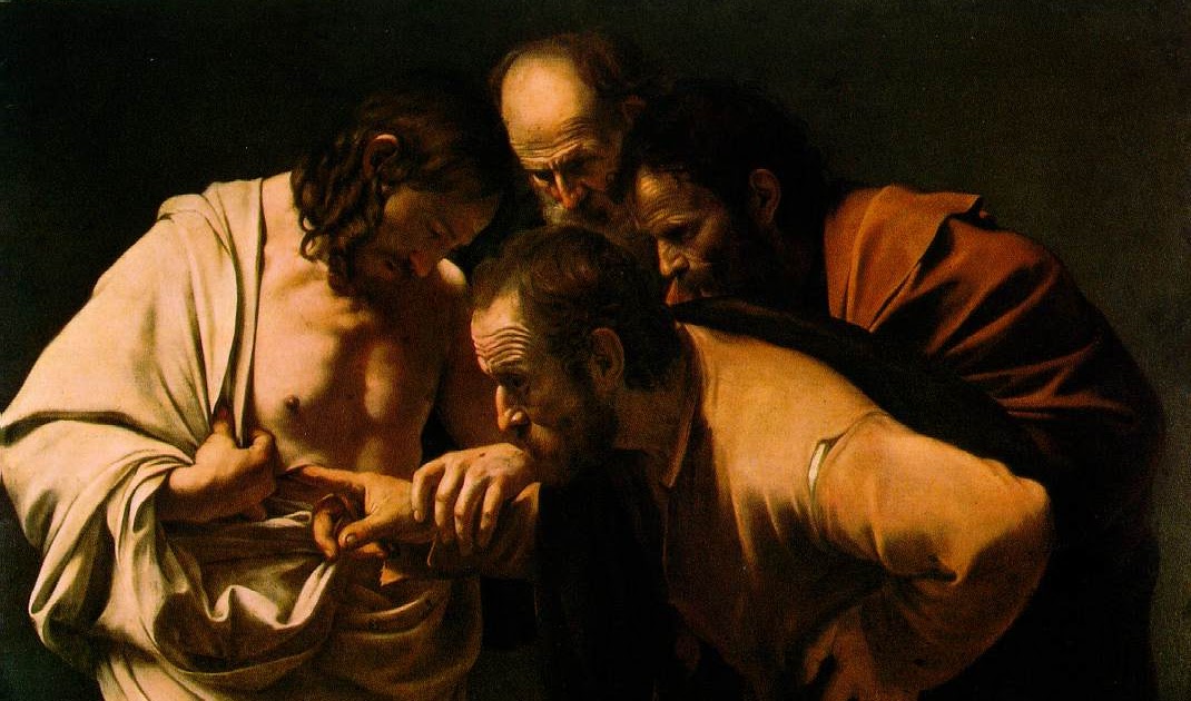 El Evangelio de San Juan da cuenta de la incredulidad de Santo Tomás ante lo testimoniado por los discípulos: «Hemos visto al Señor». Tomás dijo: «Si no veo en sus manos la señal de los clavos y no meto mi dedo en el agujero de los clavos y no meto mi mano en su costado, no creeré”.