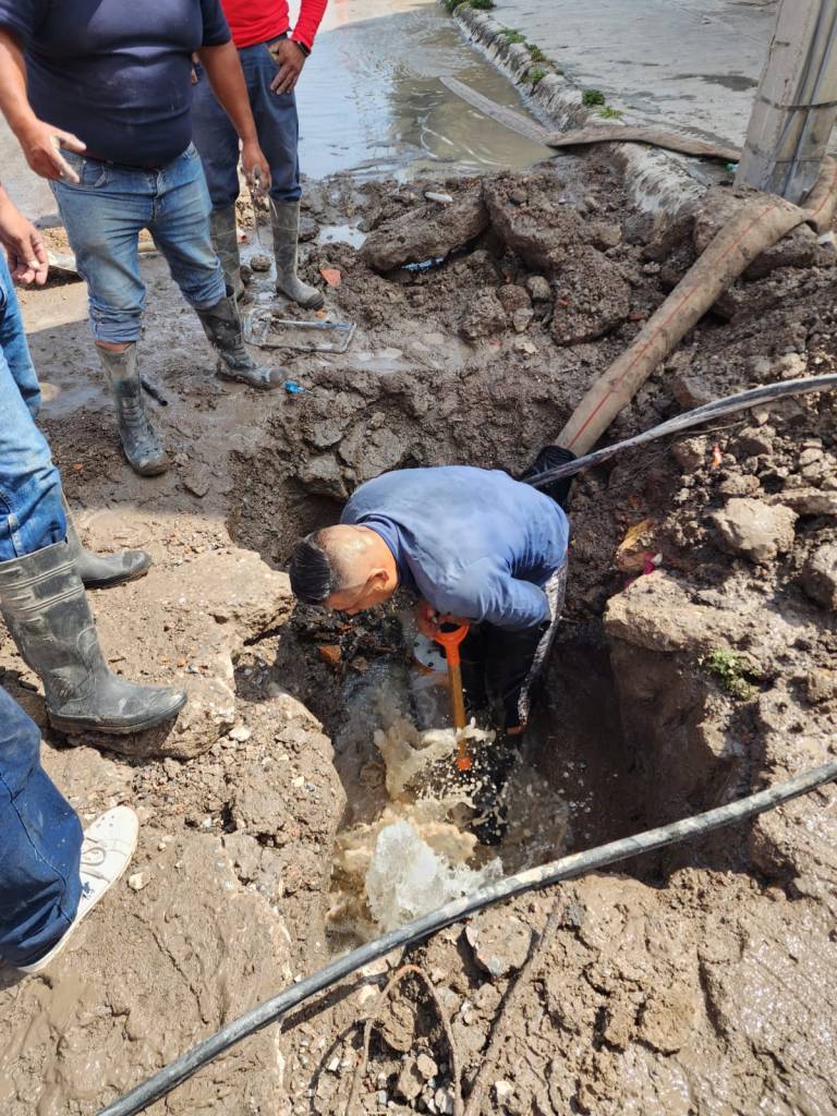 En el punto la cuadtilla de trabajo colocó tres metros lineales de tubo de 8 pulgadas de PCV de alta densidad, lo que garantiza la distribución del vital líquido a través de la red.