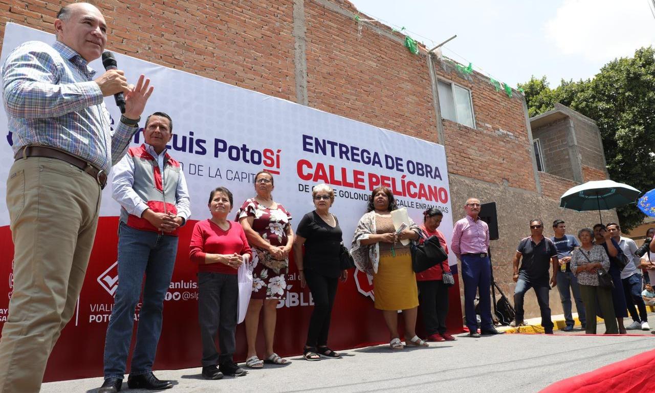 Al entregar la nueva calle de Pelícano a habitantes de Las Julias, al norte de la Capital, el Presidente Municipal de San Luis Potosí, Enrique Galindo Ceballos, reafirmó que el propósito del programa Vialidades Potosinas es devolverle la dignidad a la ciudad con obras integrales, donde no sólo se rehabilita el pavimento, sino comprende una regeneración total de avenidas principales, pero igualmente de calles de colonias.
