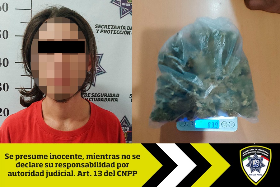 Finalmente, el sujeto fue canalizado al área de Justicia Cívica de la SSPC para una certificación médica y posteriormente presentado a la Fiscalía General del Estado para que se determine su presunta responsabilidad en el delito de posesión de enervantes.