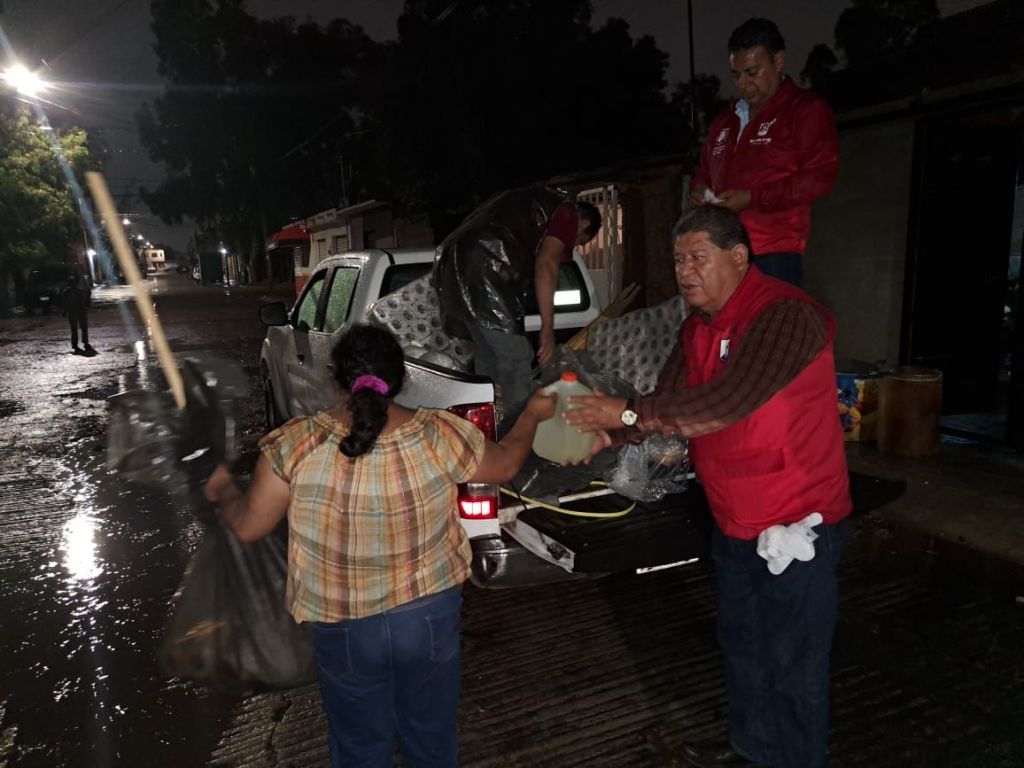 Personal de diversas áreas del Ayuntamiento y de Interapas trabajaron toda la noche para realizar labores de limpieza, desazolve, rebombeo, auxilio a automovilistas y entrega de enseres a familias afectadas.
