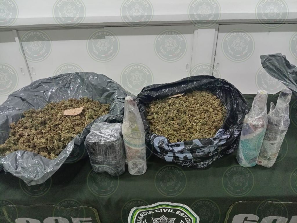 Derivado de los protocolos de seguridad y revisión que se aplican antes y después de ingresar a un centro penitenciario, la Secretaría de Seguridad y Protección Ciudadana del Estado de San Luis Potosí, informa el aseguramiento de 9 kilos de hierba seca y verde al parecer marihuana y 3 botellas de licor que pretendieron se ingresadas de contrabando al Penal de La Pila, sobre estos hechos hay 4 personas detenidas.